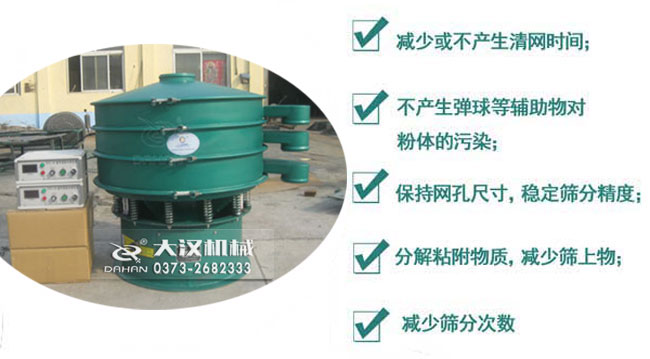 產品簡介:碳粉生產工藝中進行的過濾、篩分、分級中要使用的設備就是振動篩分機。在這里大漢振動篩廠家推薦您使用超聲波振動篩。下面詳細介紹下超聲波振動篩一些情況。